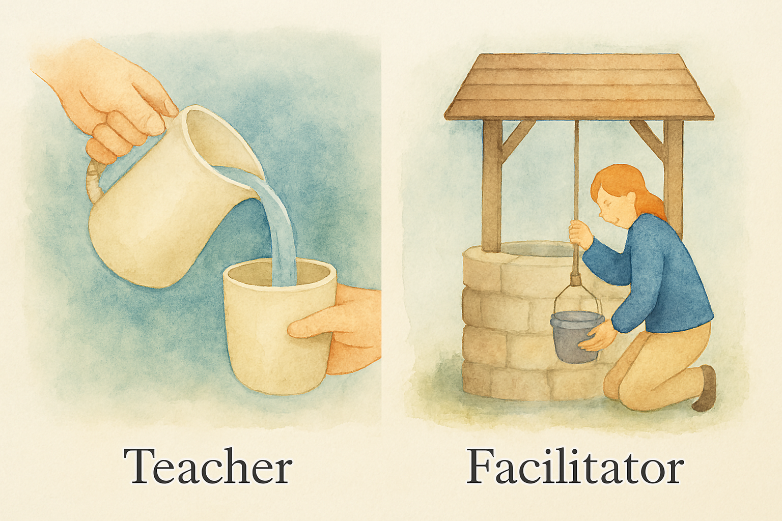 A teacher fills the cup. A facilitator helps the student discover the well.